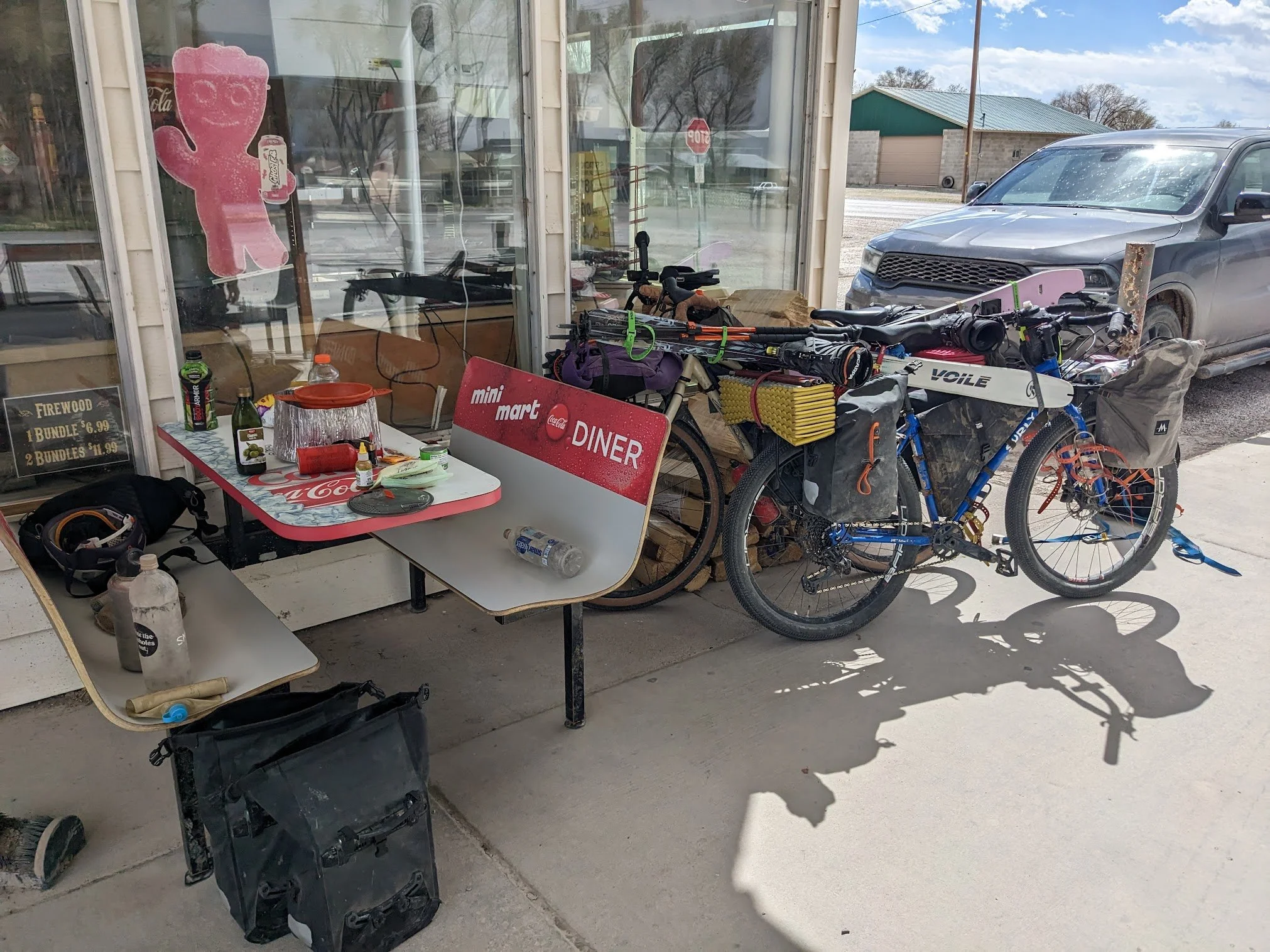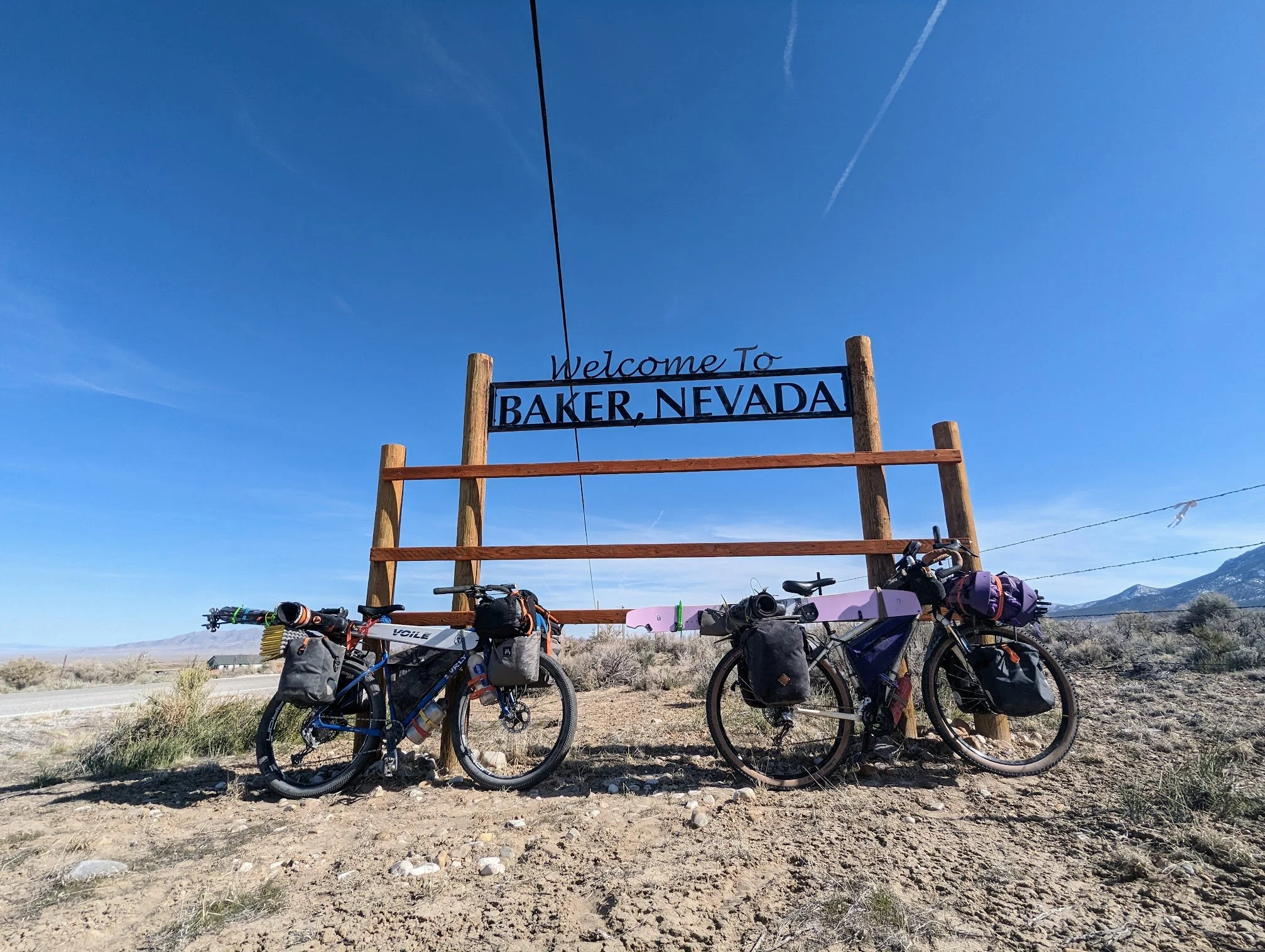 Baker, NV. A town with exactly what you need and nothing moreMeme and ice creamBaker was quiet and sleepy when we arrived that afternoon. We were definitely early for the tourism season, so we had no problem checking into the first motel we saw. The hosts, Dakota and Samantha, even gave us the “off-season” rate since we rolled in on bikes. They invited us to come back to the motel lobby, which was also the local bar, after we settled in. We ditched our gear in our room and set off on naked bikes to explore the town. After about 3 minutes we realized we had seen the entire town: the Whispering Elms Motel / Bar, the Post Office where hopefully the rest of our food was waiting, a nice looking restaurant only open on the weekends, the Startgazer Inn / Bristlecone Pine General Store, and a Mexican food truck. Not surprised but a bit disappointed, Ian and I looped back to the Bristlecone Pine General Store to check out what our shopping options were. Our disappointment with Baker was quickly thrown to the wind.