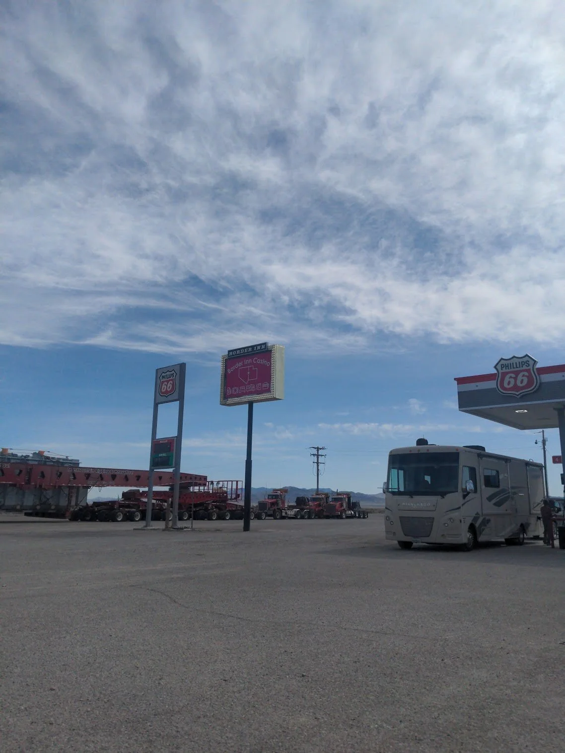 Final views of Great Basin National ParkThe notorious Border InnI’m not sure where reality landed among our expectations when we rolled into the Border Inn that night. The woman behind a plexiglass window was fulfilled like a prophecy, but she had no deals for bikers and wanted more for a one-queen bedroom than the quaint, clean, and spacious rooms at the Stargazer Inn. They only had tall boy Bud Lights available for individual beer options, and the slots looked more depressed and broken than the people playing them. So, instead of trying our luck, we cut our losses and each drank a Bug Light as we cooked a meal on a picnic table out front. We then pitched our tent in a flat spot across the highway and fell asleep with earplugs in while the flash of the Border Inn’s billboard lit up our tent walls.