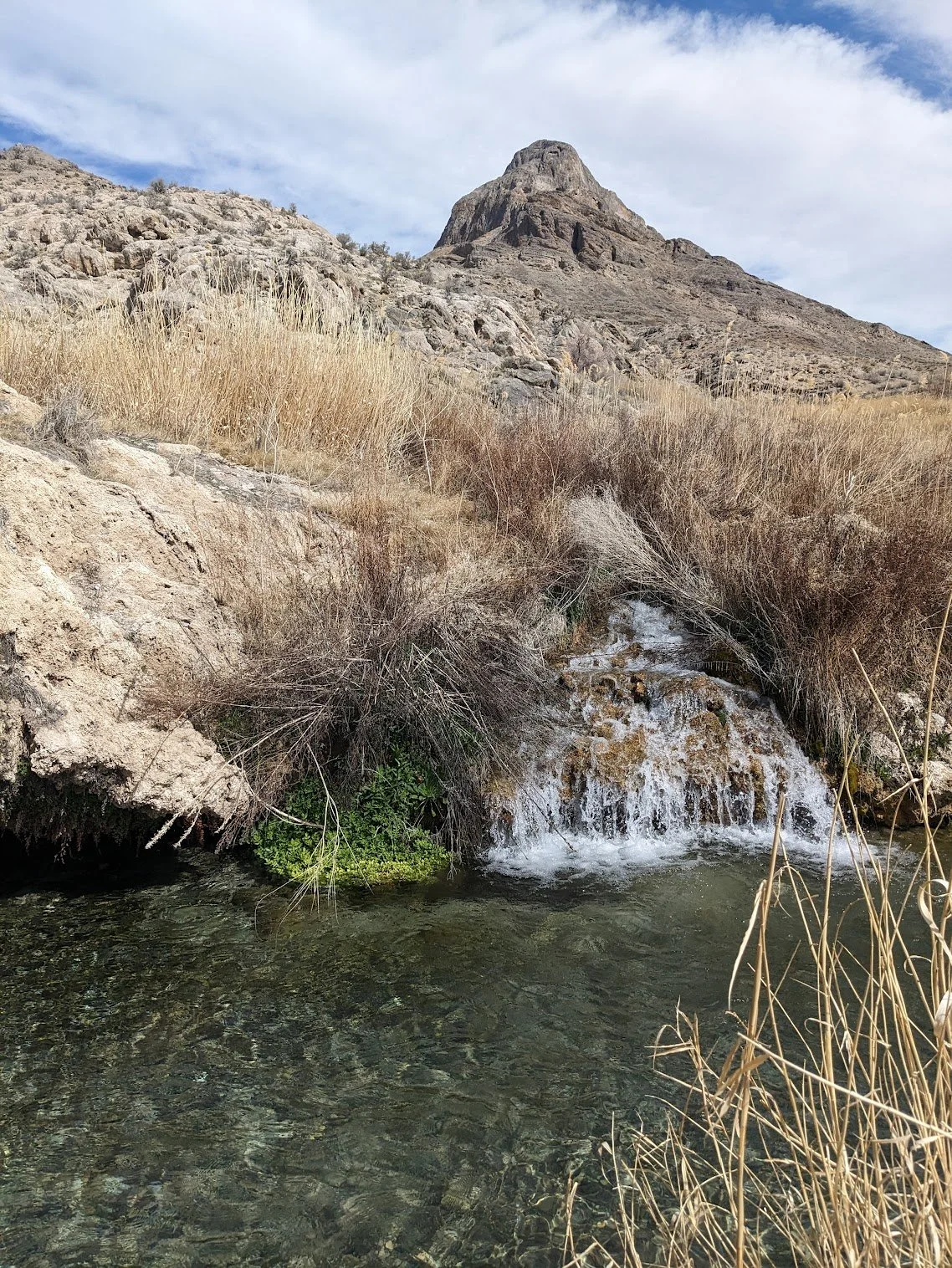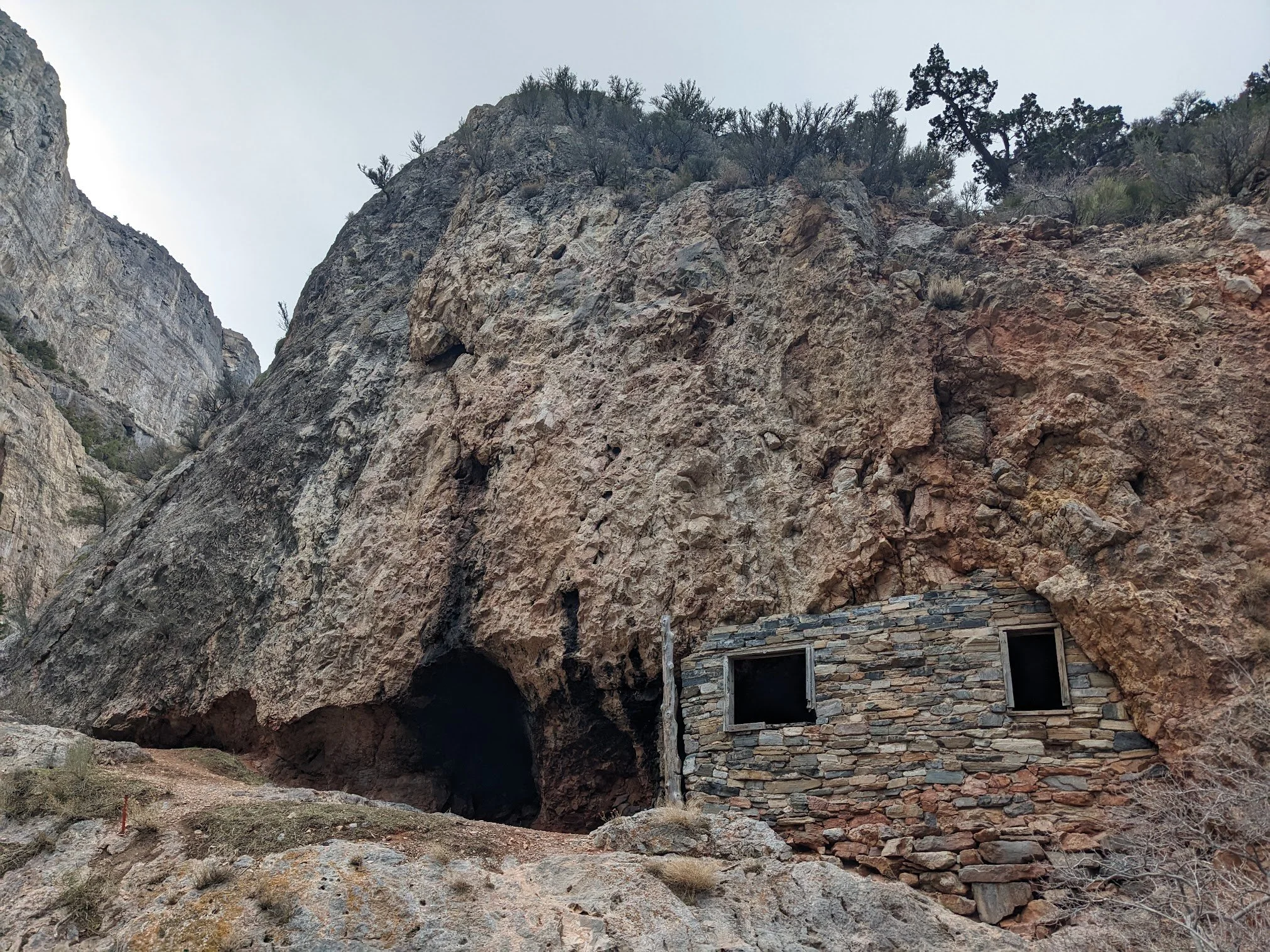 Marjum CanyonHermit's CabinCrackhead lunch break in HinkleyThe next day was crisp and clear. The salt flats in the distance reflected with flooded puddles from the night’s rain. The cool temps were welcomed as we climbed through Marjum Canyon. Along the way, we stopped to check out an old hermit cabin. Apparently, some guy used to live there and raise chickens and goats in the tight and beautiful canyon, where he’d trade the animals for other goods with travelers passing through. From the top of Marjum Pass, we could see the infamous and massive power plant all the way in the town of Delta. Between us and that power plant was our entire day’s worth of riding. We pedaled for what seemed like an entirety on a straight and ever so slightly downhill road. It felt like we weren’t going anywhere with that enormous power plant always looming in the distance. Eventually, we made it to the town of Hinkley where we stopped at the first and only store in town, the Hinkley Station. Just in time, as another big rain spout opened up as soon as we arrived. After cooking lunch and chatting with the friendly locals, we set off into the worst headwind yet. We certainly weren’t hitting our 6mph, but we had no business and nowhere to go in the rural ranching town. Plus, only 25 more miles and we’d be at Baker Hot Springs. We made it to the hot springs at sunset and enjoyed a lengthy soak that surely made our butt calluses really soft. We’d find that out the hard way the following day.
